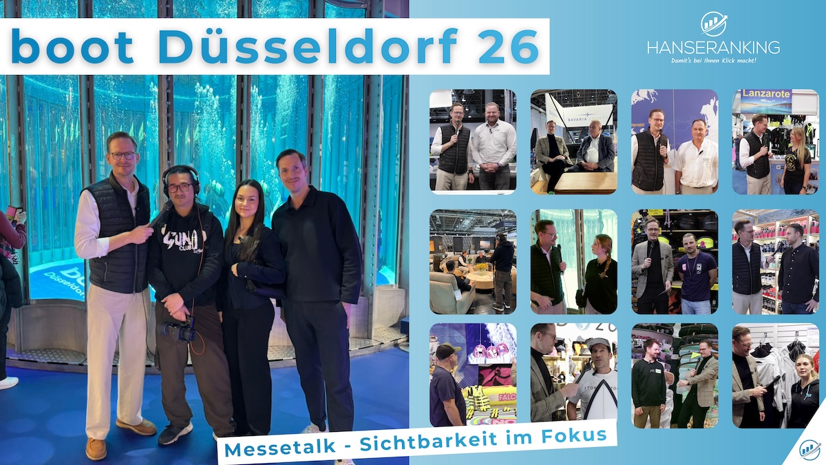 Auf der boot Düsseldorf 2026 haben wir mit Ausstellern und Partnern über Sichtbarkeit, Online Marketing und Strategien in der maritimen Branche gesprochen. Vielen Dank an Bavaria Yachtbau, Schnorchel Tauchshop, Stokedzone Surf, Divepoint Maldives, Lana Kur Möbelhandel, Hotspring, Beluga Reisen, Wasserski Langenfeld, Pauls Kiteschule, BPM Proshop, Freediving & More, Nautik Dive, Camaro, Crazy Shark, Yeti und alle weiteren Partner für ihre Zeit und Einblicke!
