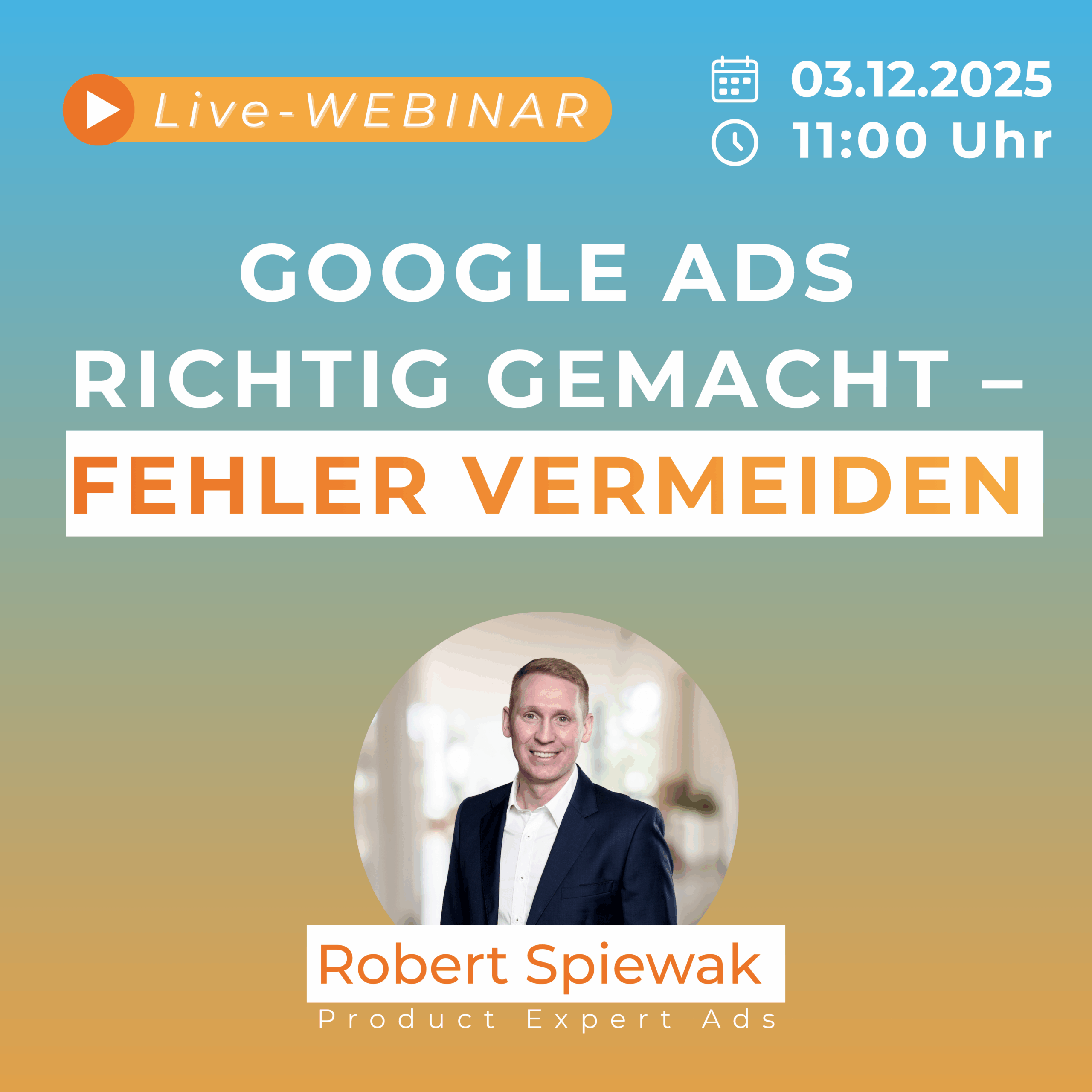 In diesem Webinar tauchen wir tief in die Welt von Google Ads ein und zeigen dir, wie du die häufigsten Fehler vermeidest, die selbst erfahrene Nutzer oft machen. Mit praxisorientierten Tipps und Tricks, die du direkt anwenden kannst, lernst du, wie du deine Kampagnen effizienter gestaltest.