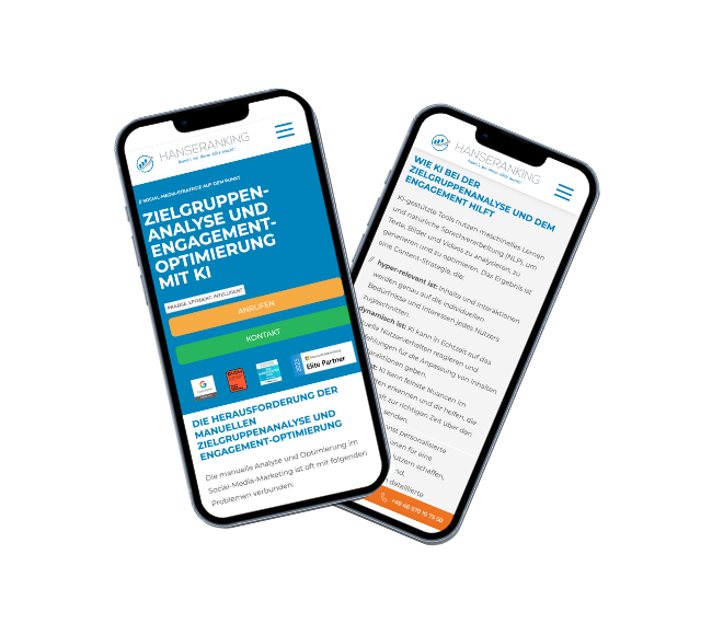 Bei Hanseranking nutzen wir die neuesten KI-Technologien, um deine Zielgruppenanalyse und Engagement-Optimierung im Social-Media-Marketing zu perfektionieren. Wir kombinieren unser tiefes Verständnis für Social-Media mit der analytischen Power der KI, um dir nicht nur Daten, sondern auch handlungsrelevante Einblicke zu liefern.